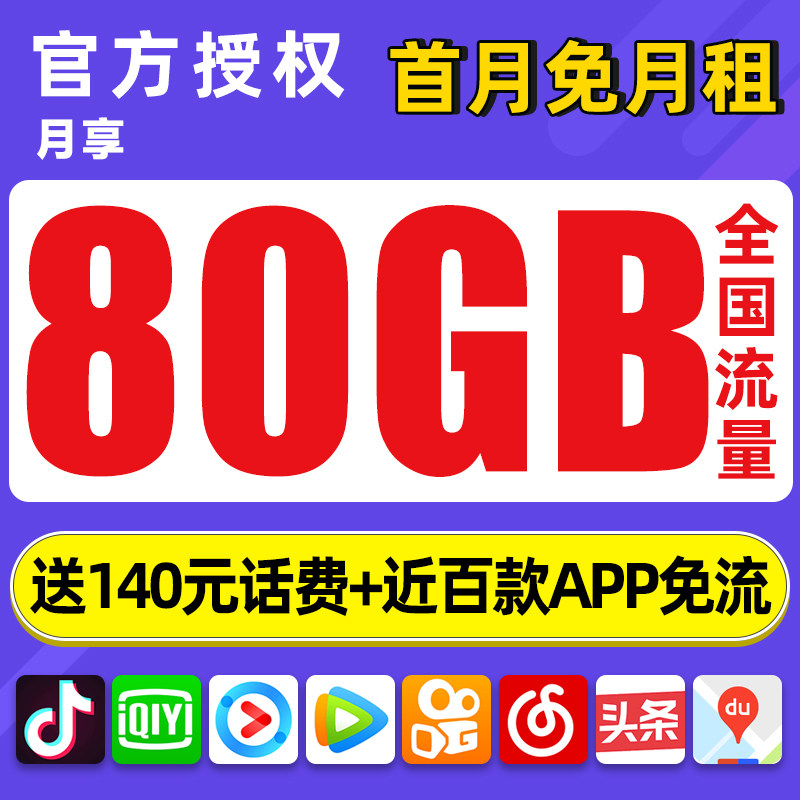 首年29元/月 80GB电信手机流量套餐