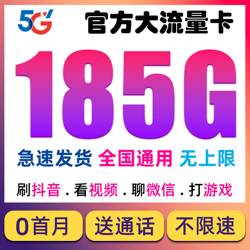 中国联通大流量卡185G电话卡无线限流量卡5g全国通用纯流量网卡