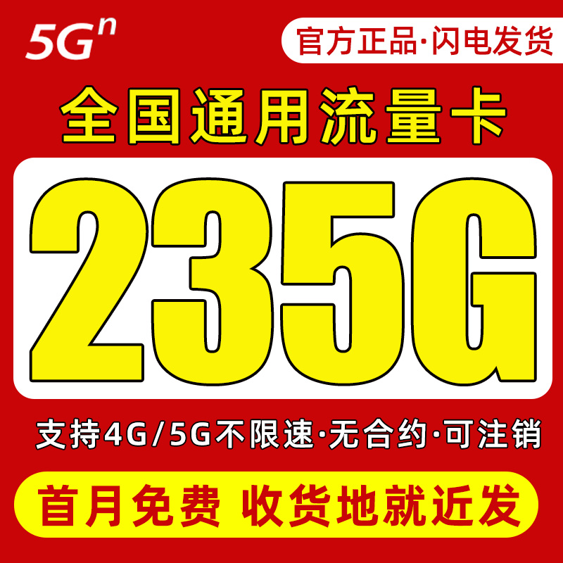 中国移动流量卡纯上网全国通用无线限量5G大流量手机电话上网卡4G